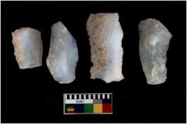 | Description / विवरण | Specimen of a cores with several broad fluted marks. Some of them are tapering at one end. |