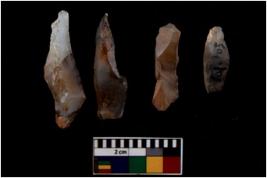| Description / विवरण | There are n 4 flakes tool; there are flakes with sides trimmed, Marks of secondary flaking are present on the both the faces.The dorsal is relatively flat. |