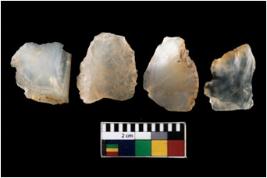 | Description / विवरण | There are n 4 ; worked utilized flakes; there are multidirectional irregular scar pattern on both dorsal and ventral face of the flakes. Two of them are tapering at one end. All are having sharp edges. |