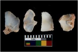 | Description / विवरण | There are n 4 utilized flake cores. There are multi directional irregular scar pattern on them. Two are tapering at one end two have blunted edges. |