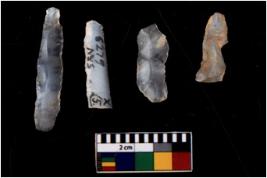 | Description / विवरण | There are n 4 Flake tool; There are multidirectional irregular scar pattern on them. few have blunt edges, Some of them are tapering at one end. |