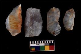 | Description / विवरण | There are n 4 flakes tool; there are flakes with sides trimmed, Marks of secondary flaking are present on the both the faces.The dorsal is relatively flat. |