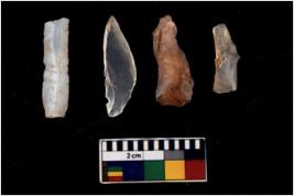 | Description / विवरण | There are n 4 Flake tool; There are multidirectional irregular scar pattern on them. few have blunt edges, Some of them are tapering at one end. |