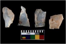 | Description / विवरण | There are n 4 utilized flake cores. There are multi directional irregular scar pattern on them. One has sharp edge and three have blunted edges. |