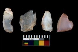 | Description / विवरण | There are n 4 utilized flake cores. There are multi directional irregular scar pattern on them. Two are tapering at one end two have blunted edges. |