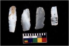 | Description / विवरण | There are n 4 flakes tool; there are flakes with sides trimmed, Marks of secondary flaking are present on the both the faces.The dorsal is relatively flat. |