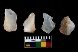 | Description / विवरण | There are n 4 utilized flake cores. There are multi directional irregular scar pattern on them. One has sharp edge and three have blunted edges. |