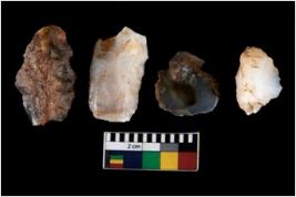 | Description / विवरण | There are n 4 ; worked utilized flakes; there are multidirectional irregular scar pattern on both dorsal and ventral face of the flakes. Two of them are tapering at one end. All are having sharp edges. |