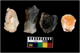 | Description / विवरण | There are n 4 ; worked utilized flakes; there are multidirectional irregular scar pattern on both dorsal and ventral face of the flakes. One of them is tapering at one end. All are having sharp edges. |