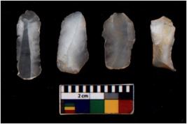 | Description / विवरण | There are n 4 flakes tool; there are flakes with sides trimmed, Marks of secondary flaking are present on the both the faces.The dorsal is relatively flat. |