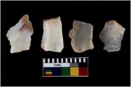 | Description / विवरण | There are n 4 utilized flake cores. There are multi directional irregular scar pattern on them. One is tapering at one end and three have blunted edges. |