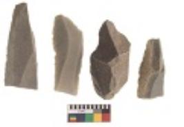 | Description / विवरण | There are n 4 utilized flake cores. There are multidirectional irregular dominant scar pattern on both dorsal and ventral face of the flake cores. Two have sharp edges and two are tapering at one end. |