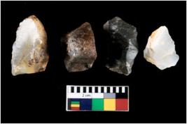| Description / विवरण | There are n 4 ; worked utilized flakes; there are multidirectional irregular scar pattern on both dorsal and ventral face of the flakes. Three of them are tapering at one end. All are having sharp edges. |