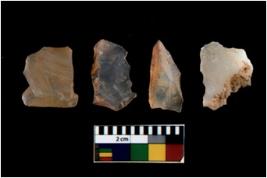 | Description / विवरण | There are n 4 utilized flake cores. There are multi directional irregular scar pattern on them. One has sharp edge and three have blunted edges. |