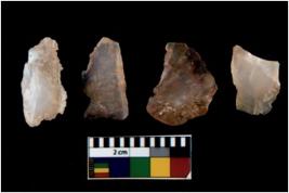 | Description / विवरण | There are n 4 utilized flake cores. Out of them one is made up of Chert and three are made up of Chalcedony. There are multi directional irregular scar pattern on them. All of them are tapering at one end. |
