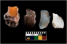 | Description / विवरण | There are n 4 ; worked utilized flakes; there are multidirectional irregular scar pattern on both dorsal and ventral face of the flakes. One of them is tapering at one end. All are having sharp edges. |