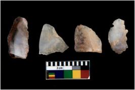 | Description / विवरण | There are n 4 utilized flake cores. Out of them one is made up of Chert and three are made up of Chalcedony. There are multi directional irregular scar pattern on them. Two are tapering at one end two have blunted edges. |