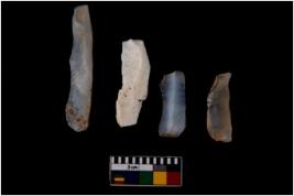 | Description / विवरण | There are n 4 flakes tool; there are flakes with sides trimmed, Marks of secondary flaking are present on the both the faces.The dorsal is relatively flat. |