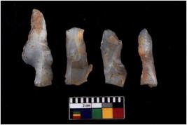 | Description / विवरण | There are n-4 of utilized flake cores. There are multidirectional irregular dominant scar pattern on both dorsal and ventral face of the cores. |