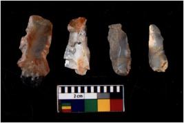 | Description / विवरण | There are n 4 flakes tool; there are large flakes with sides trimmed, Marks of secondary flaking are present on the both the faces. |