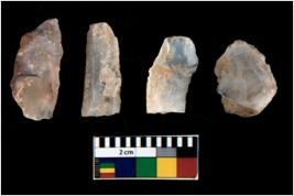 | Description / विवरण | There are n 4 utilized flake cores. Out of them two are made up of Chert and two are made up of Chalcedony. There are multi directional irregular scar pattern on them. All of them are tapering at one end. |