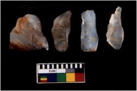 | Description / विवरण | There are n 4 flakes tool; there are large flakes with sides trimmed, Marks of secondary flaking are present on the both the faces. |