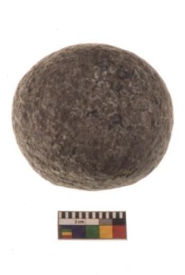 | Description / विवरण | Specimen of a spherical shaped hammer stone with battered surface |