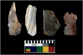 | Description / विवरण | There are n 4 utilized flake cores. Out of them two are made up of Chert and two are made up of Chalcedony. There are multi directional irregular scar pattern on them. Three are tapering at one end and one has sharp edge. |