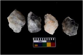 | Description / विवरण | There are n 4 utilized flake cores. Two have blunted edges and two have round edges. |