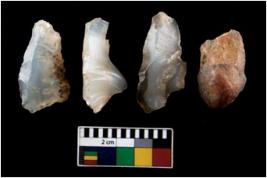| Description / विवरण | There are n 4 ; worked utilized flakes; there are multidirectional irregular scar pattern on both dorsal and ventral face of the flakes.All of them are tapering at one end. All are having sharp edges. |