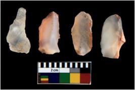 | Description / विवरण | There are n 4 utilized flake cores. There are multi directional irregular scar pattern on them. All of them are tapering at one end. |