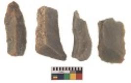 | Description / विवरण | There are n 4 utilized flake cores. There are multidirectional irregular dominant scar pattern on both dorsal and ventral face of the flake cores. Two have sharp edges and two are tapering at one end. |