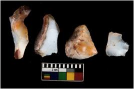 | Description / विवरण | There are n 4 ; worked utilized flakes; there are multidirectional irregular scar pattern on both dorsal and ventral face of the flakes. Three of them are tapering at one end. All are having sharp edges. |