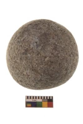 | Description / विवरण | Specimen of a spherical shaped hammer stone with battered surface |