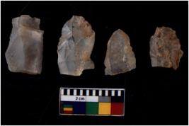 | Description / विवरण | There are n 4 cores. There are multi directional irregular scar pattern on both dorsal and ventral face of the cores. Some have blunted edges and some have round edges. |