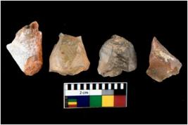 | Description / विवरण | There are n 4 utilized flake cores. Out of them one is made up of Chert and three are made up of Chalcedony. There are multi directional irregular scar pattern on them. Three have blunted edges and one has round edge. |