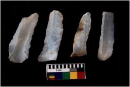 | Description / विवरण | There are n 4 flakes tool; there are flakes with sides trimmed, Marks of secondary flaking are present on the both the faces.The dorsal is relatively flat. |