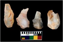| Description / विवरण | There are n 4 utilized flake cores. There are multi directional irregular scar pattern on them. All of them are tapering at one end. |