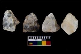 | Description / विवरण | There are n 4 utilized flake cores. Two have blunted edges and two have round edges. |