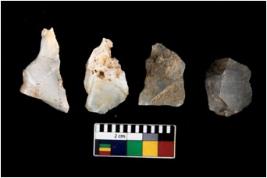 | Description / विवरण | There are n 4 ; worked utilized flakes; there are multidirectional irregular scar pattern on both dorsal and ventral face of the flakes. Three of them are tapering at one end. All are having sharp edges. |