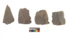 | Description / विवरण | There are n 4 utilized flake cores. There are multidirectional irregular dominant scar pattern on both dorsal and ventral face of the flake cores. One has sharp edges and three have blunted edges. |