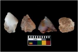 | Description / विवरण | There are n 4 utilized flake cores. Out of them one is made up of Chert and three are made up of Chalcedony. There are multi directional irregular scar pattern on them. Two have sharp edges and two have blunted edges. |
