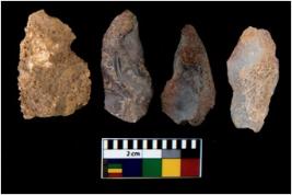 | Description / विवरण | There are n 4 utilized flake cores. Out of them one is made up of Chert and three are made up of Chalcedony. There are multi directional irregular scar pattern on them. All of them are tapering at one end. |