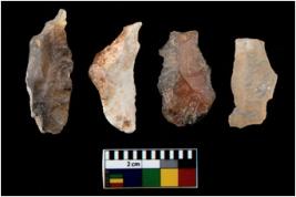 | Description / विवरण | There are n 4 utilized flake cores. Out of them one is made up of Chert and three are made up of Chalcedony. There are multi directional irregular scar pattern on them. Two are tapering at one end and two have sharp edges. |