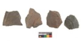 | Description / विवरण | There are n 4 utilized flake cores. There are multidirectional irregular dominant scar pattern on both dorsal and ventral face of the flake cores. Two have blunted edges and two have round edges. |