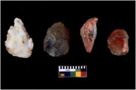 | Description / विवरण | There are n 4 cores; there are multi directional irregular scar pattern on them. Some of them are tapering at one end. 3 quartz 1 chert |