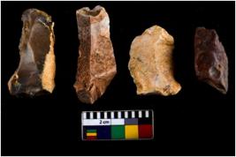 | Description / विवरण | There are n 04 objects; among them two are blade core, all of them have sharp edges, three are tapering at one end. |