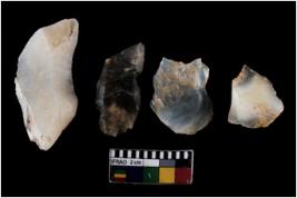| Description / विवरण | There are n 4 ; worked utilized flakes; there are multidirectional irregular scar pattern on both dorsal and ventral face of the flakes. Two of them are tapering at one end. All are having sharp edges. |