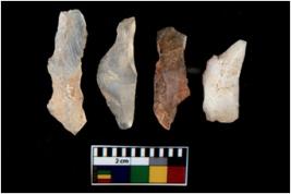 | Description / विवरण | There are n 4 utilized flake cores. There are multi directional irregular scar pattern on them. All of them are tapering at one end. |
