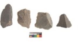 | Description / विवरण | There are n 4 utilized flake cores. There are multidirectional irregular dominant scar pattern on both dorsal and ventral face of the flake cores. One is tapering at one end and three have blunted edges. |